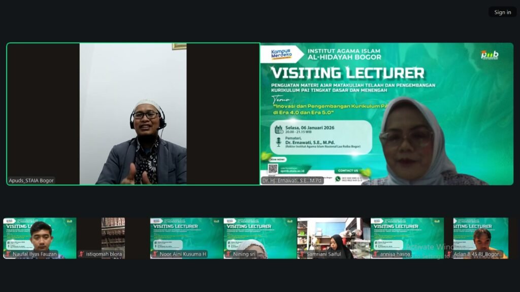 Bogor – Program Studi Pendidikan Agama Islam Institut Agama Islam Al-Hidayah Bogor menyelenggarakan kegiatan Visiting Lecturer dalam rangka penguatan materi ajar mata kuliah Telaah dan Pengembangan Kurikulum Pendidikan Agama Islam pada Pendidikan Dasar dan Menengah. Kegiatan ini dilaksanakan secara daring pada Selasa, 6 Januari 2026, melalui platform Zoom Meeting.